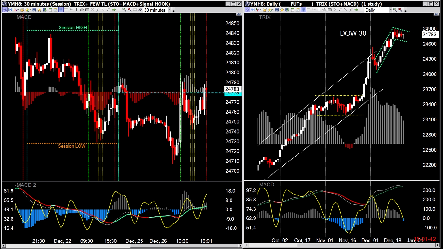 Full steam ahead for the DJIA, not so much for the ES+NQ
